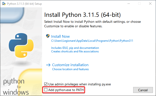 Check that python is installed from the website and not the Microsoft Store. If it’s installed from the Microsoft Store, uninstall it then download and install from the python website.
