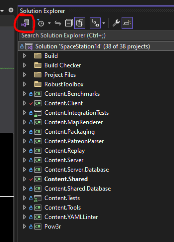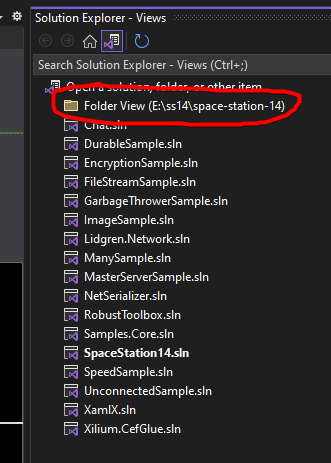 This may be because you opened the project as a folder rather than a solution. Make sure you open it as a solution and click the space station 14 .sln file.