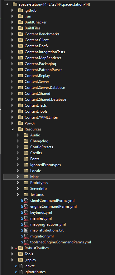 SpaceStation14.sln - If you plan to do engine development you must add Robust Toolbox to the Directory Mappings so that Riders VCS can detect changes to Robust.