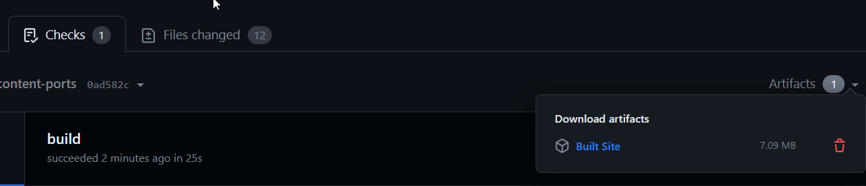 If you want a slightly more authentic experience, every PR will have the Test mdBook Build & Upload Artifact action run, and you can download the built site like so:
