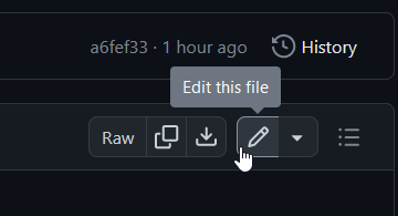 - Click the ‘Edit this file’ button at the top right of the file view.